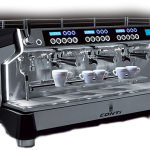 1961 – 1950’de Ernest Valente tarafından geliştirilen pompa temelli espresso makinesi, M. Faema tarafından pazarlandı. Sıcak suyun öğütülmüş kahveden geçmesi için elle kontrol edilen bir piston kullanmak yerine, bir elektrik motoru kullanıldı. Su, öğütülmüş kahveye gönderilmeden önce kaynatıcının içinden ilerleyen bir borudan geçiyordu. Pompayla çalışan bu basit espresso makinesi günümüzde de kullanılmaktadır.